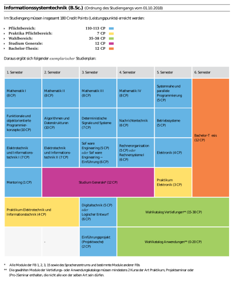Der Studiengang Informationssystemtechnik bildet deshalb Ingenieure aus, die über ein umfangreiches Wissen in den IT-nahen Bereichen der Elektrotechnik und der Praktischen Informatik verfügen. Dabei wird eine breite Grundlagenausbildung mit der Möglichkeit kombiniert, sich in drei verschiedenen Vertiefungsgebieten zu spezialisieren: Kommunikationstechnik und -systeme, System on Chip and Embedded System sowie Software-Entwicklung. Darüber hinaus bieten aktuelle Anwendungsgebiete wie Multimedia und Robotik den Studierenden die Gelegenheit ihr erworbenes Grundlagenwissen praxisnah anzuwenden. Folgende thematische Schwerpunkte stehen zur Auswahl:
